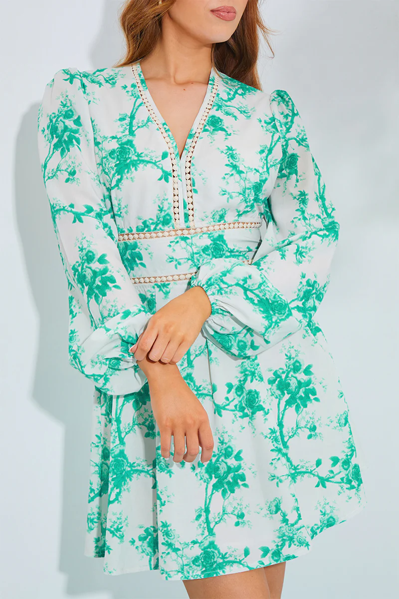 Floral Broderie Trim Mini Skater Dress