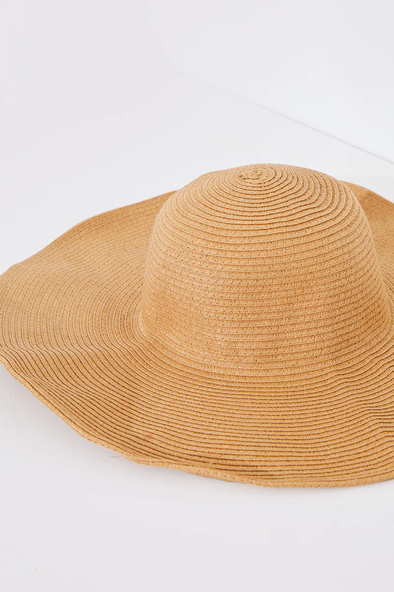 Nothing says summer like a summer hat and our new tan wide rim summer hat will be the perfect accessory all season.
